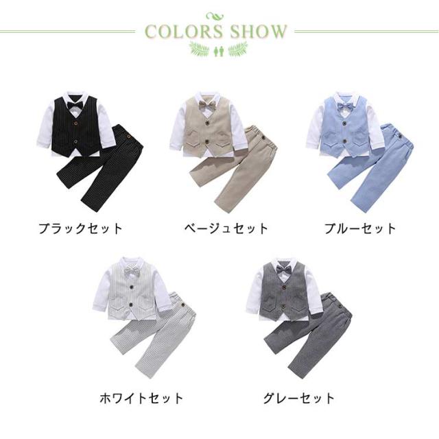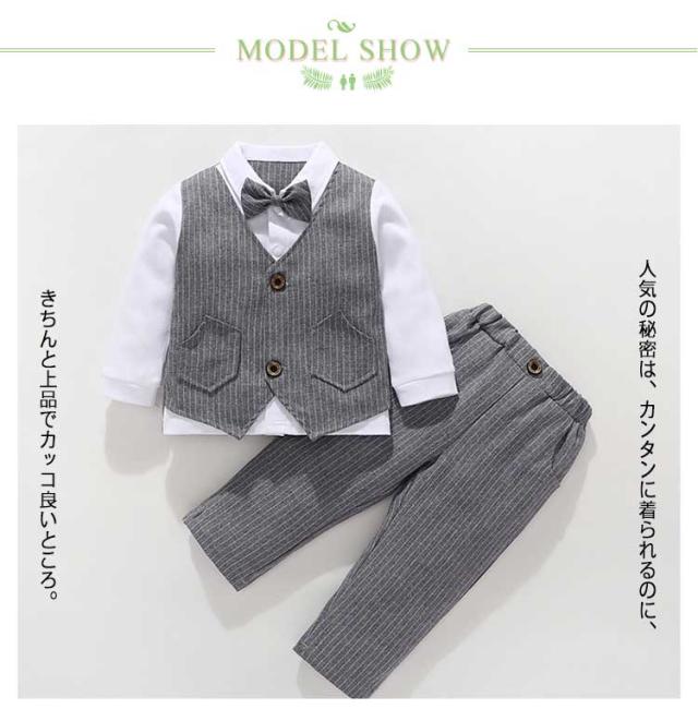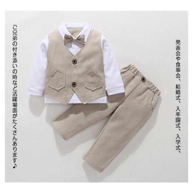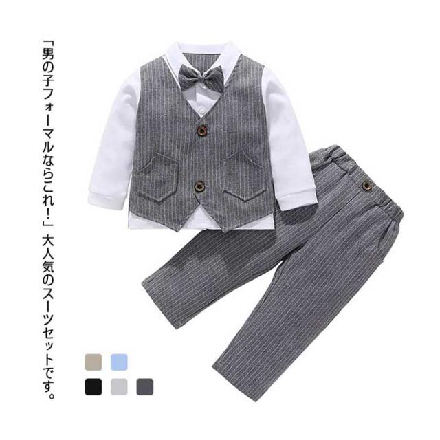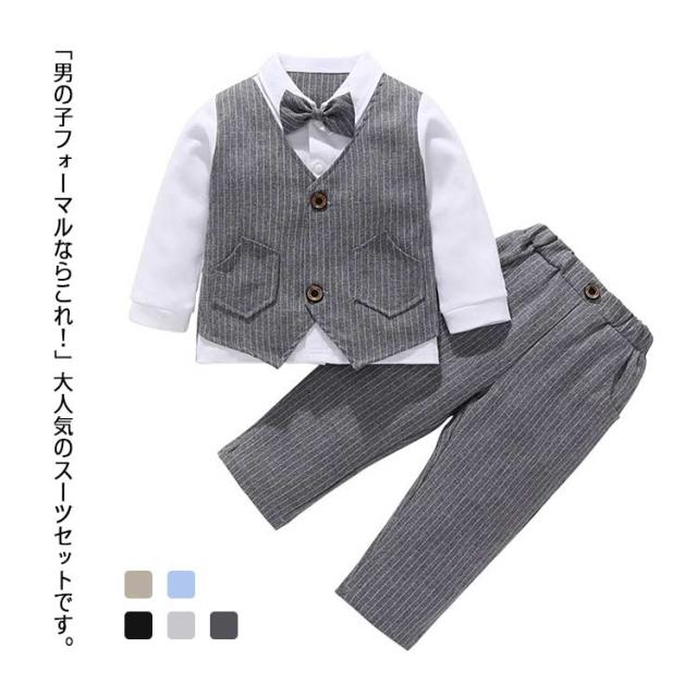 子供スーツ 上下セット フォーマル スーツ スーツセット 男の子 ベビー 重ね着風 お買い得2点セット 綿 ベスト 入学式 結婚式 発表会 コスチューム 正装 イベント服 Vネック タキシード