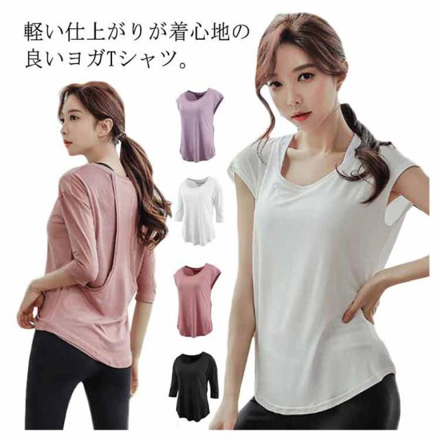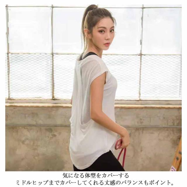 ヨガTシャツ ヨガウェア tシャツ トップス レディース ホットヨガ フィットネスウェア スポーツウェア 体型カバー Tシャツ カットソー 五分袖 ノースリーブ 水着 吸汗 速乾 軽量 ランニング ストレッチ ピラティス メッシュ シースルー 送料無料