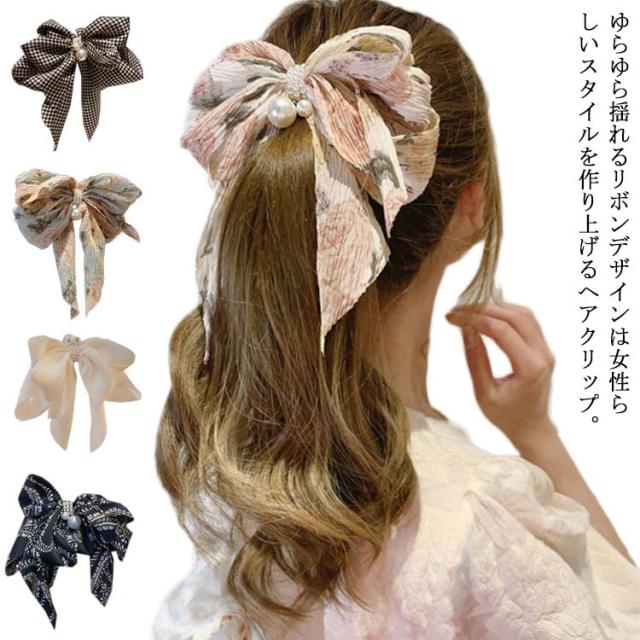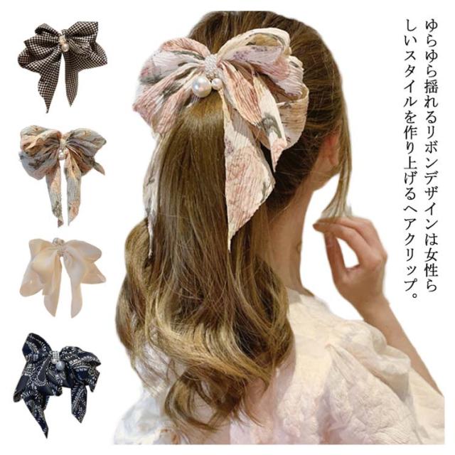【送料無料】ヘアクリップ ヘアアクセサリー ヘアアクセ リボン ヘアークリップ クリップ 髪留め ビックリボン チェック 花柄 シフォン アクセサリー 雑貨 バナナクリップ 大きめ カラフル チアダンス コスプレ 結婚式 パーティ ヘアアクセサリー