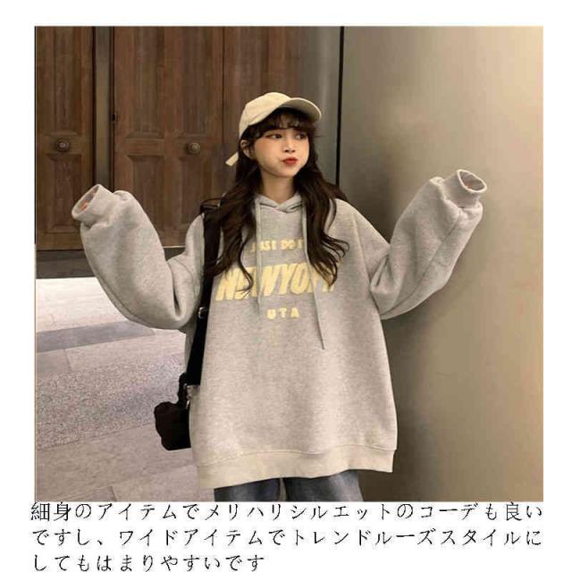 | シンプルなデザインだからこそ使い勝手も良く、コーディネートにも困らない優れパーカー。 ルーズなシルエットは体のラインが出ずらいので、体型カバーにもぴったり! 細身のアイテムでメリハリシルエットのコーデも良いですし、ワイドアイテムでトレンドルーズスタイルにしてもはまりやすいです。 生地感は柔らかい触り心地で、一般的なスウェットなのでごわごわせずにノンストレスな生地です。 | |