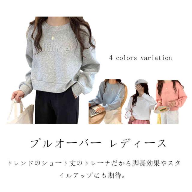 プルオーバー レディース ショート丈 長袖 トップ トレーナー ミニパーカー tシャツ トップ スウェットシャツ かわいい 春秋 冬服
