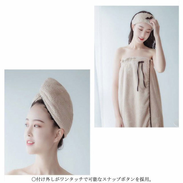 スナップボタン留めのマイクロファイバー生地ガウン 2点セット タオルキャップ スナップボタン ゲストウェア 業務用 接骨院 整骨院 リラクゼーション マッサージ サロン エステ 施術 エステサロン ブラウン ベージュ グレー マイクロファイバー