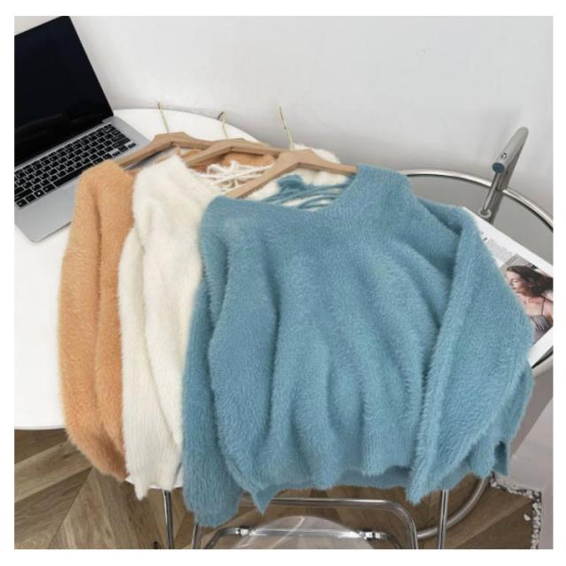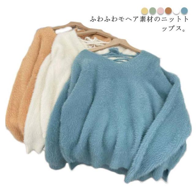 ニットセーター レディース 長袖 トップス 可愛い モヘア ショート丈 トップス 大きいサイズ 秋冬 新作 韓国 トレンド 秋服 冬服 ゆったり オシャレ 暖かい ふんわり モヘアタッチ オフィス カジュアル 通勤 通学 シンプル