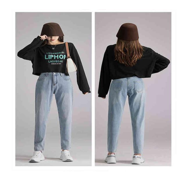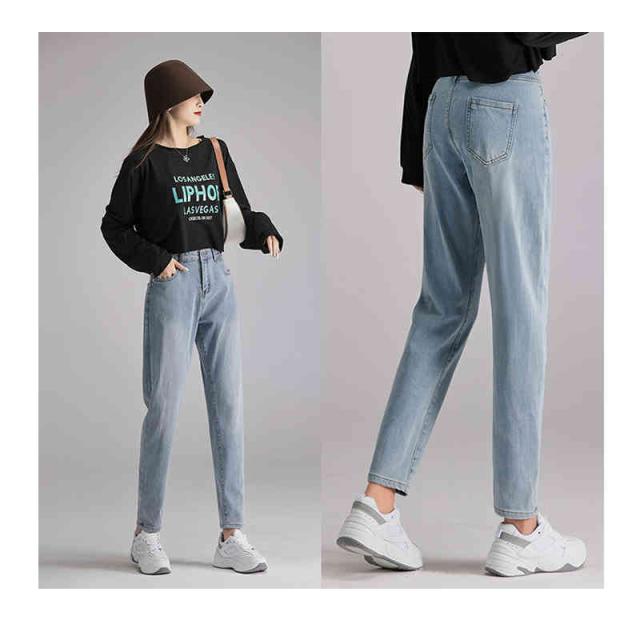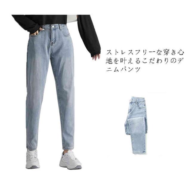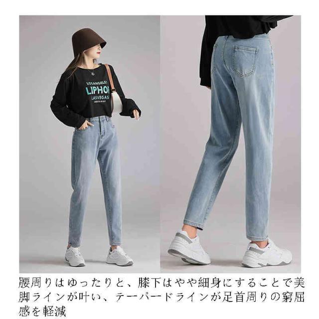 デニムパンツ ハイウエストテーパードデニム ジーンズ レディース テーパード 伸縮 美脚 大きいサイズ ゆるシルエット ボトム ジーパン 綿 柔らかい 7サイズ
