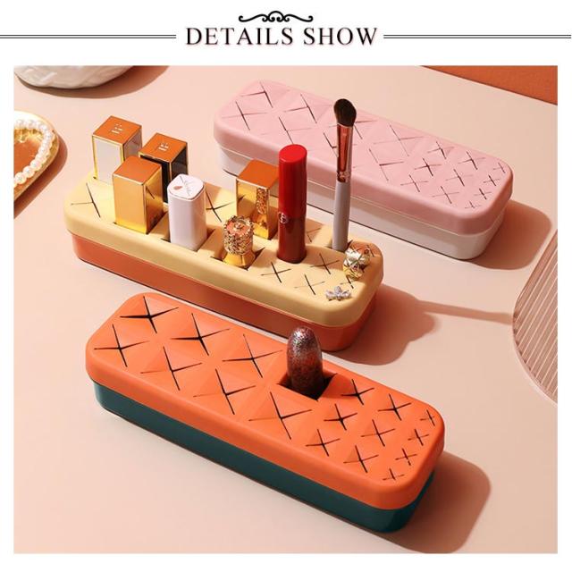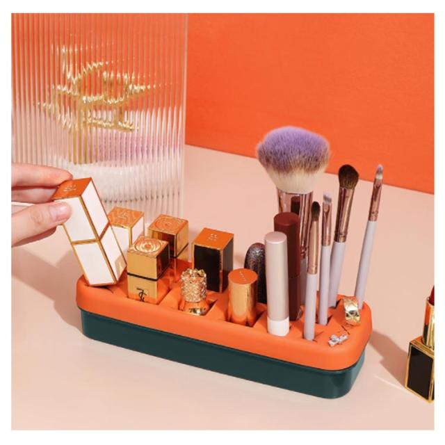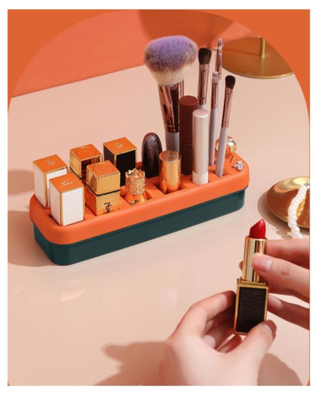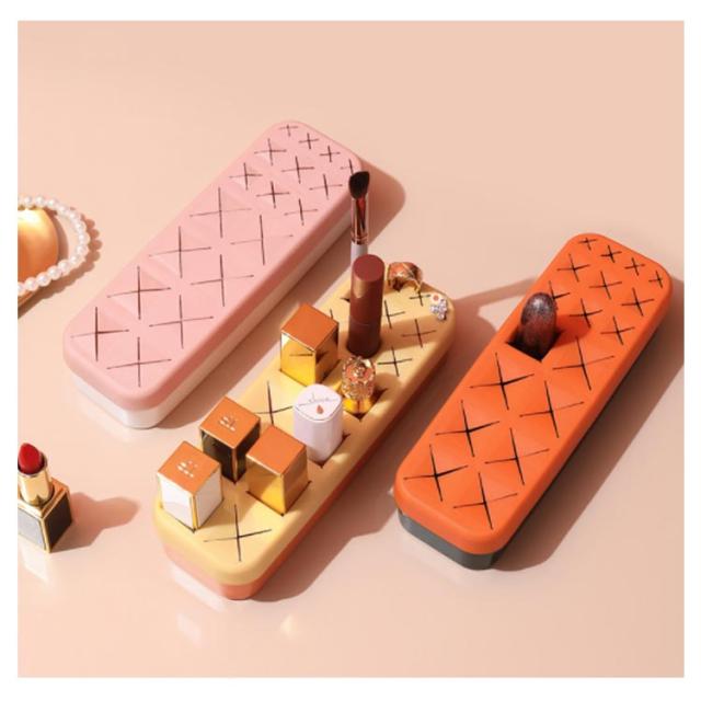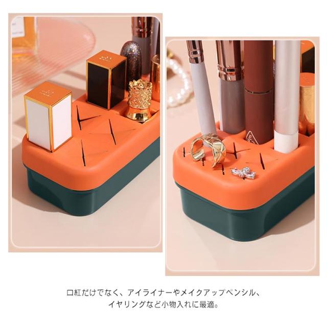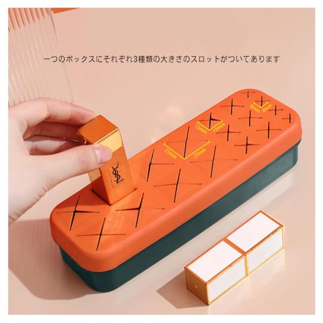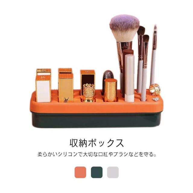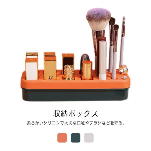 | 収納ボックス 柔らかいシリコンで大切な口紅やブラシなどを守る。 散らかしがちな口紅、大きな化粧ブラシ、ネイルなどを差し込むだけでスッキリ収納できる。 一つのボックスにそれぞれ3種類の大きさのスロットがついてあります 口紅だけでなく、アイライナーやメイクアップペンシル、イヤリングなど小物入れに最適。 | |