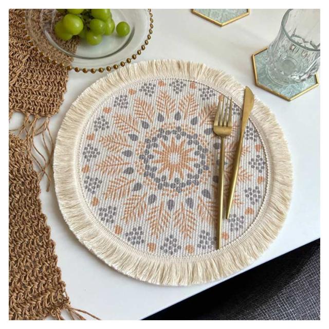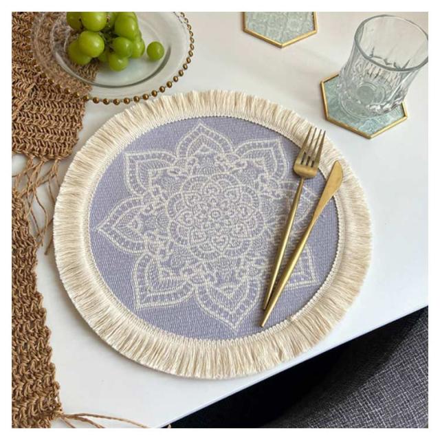 ランチョンマット やけど防止ポットマット ウォーターヒヤシンスのアジアンランチョンマット パープル×ナチュラル ティーマット テーブルウェア テーブルマット プレースマット モダン ランチマット アジアン物 キッチングッズ