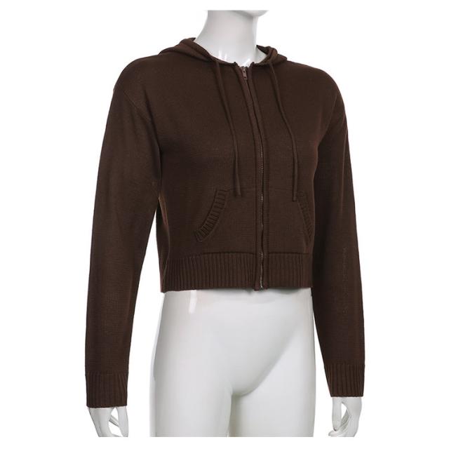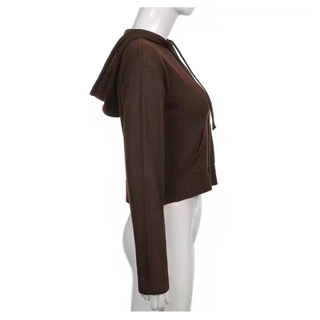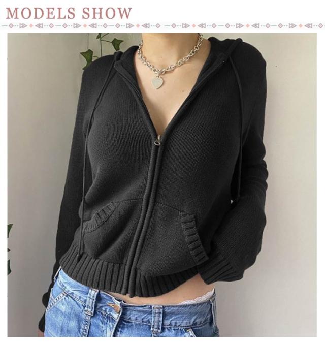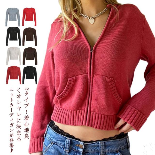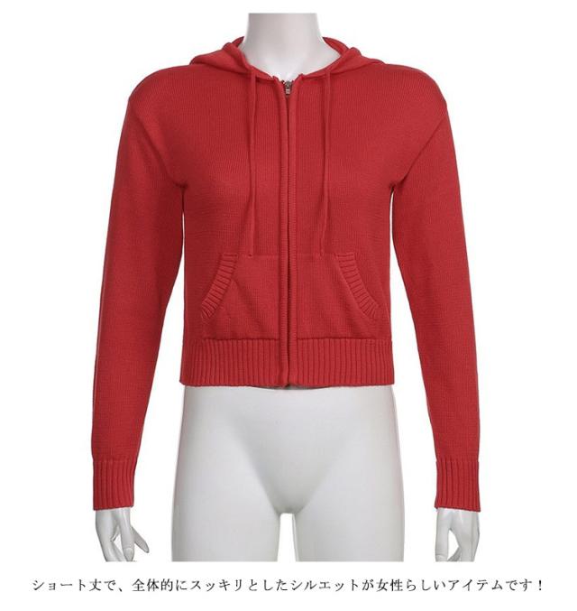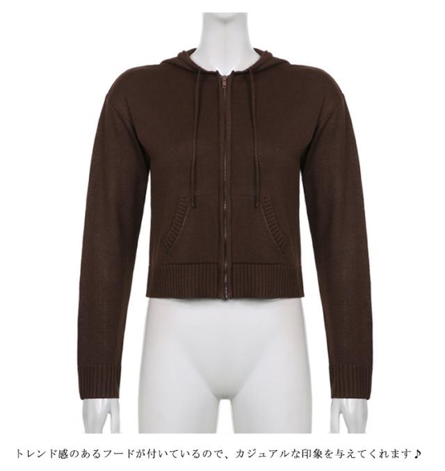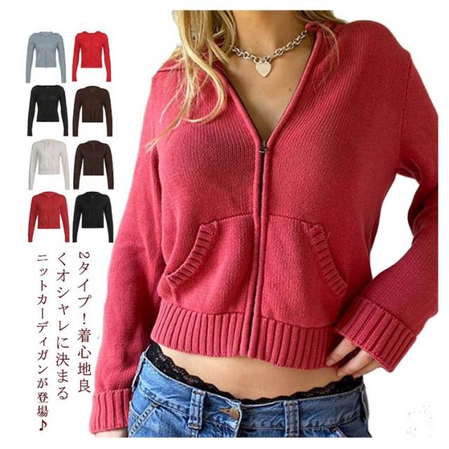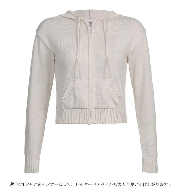 ニットパーカー フード付 長袖 ニットカーディガン 無地 トップス 着痩せ 春秋 レディース ショート丈 ポケット付き 前開き お洒落 普段着 アウター カジュアル