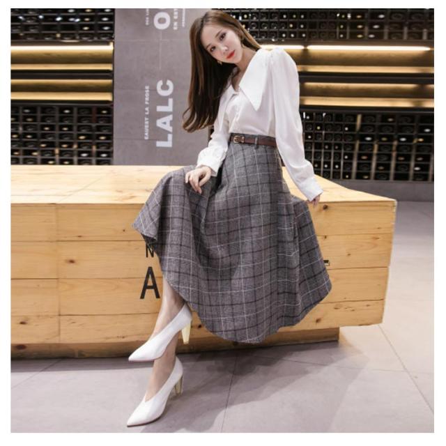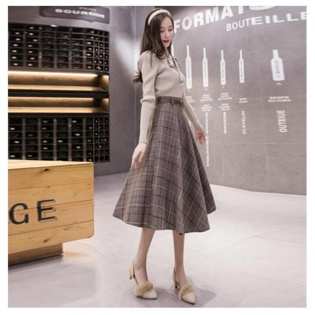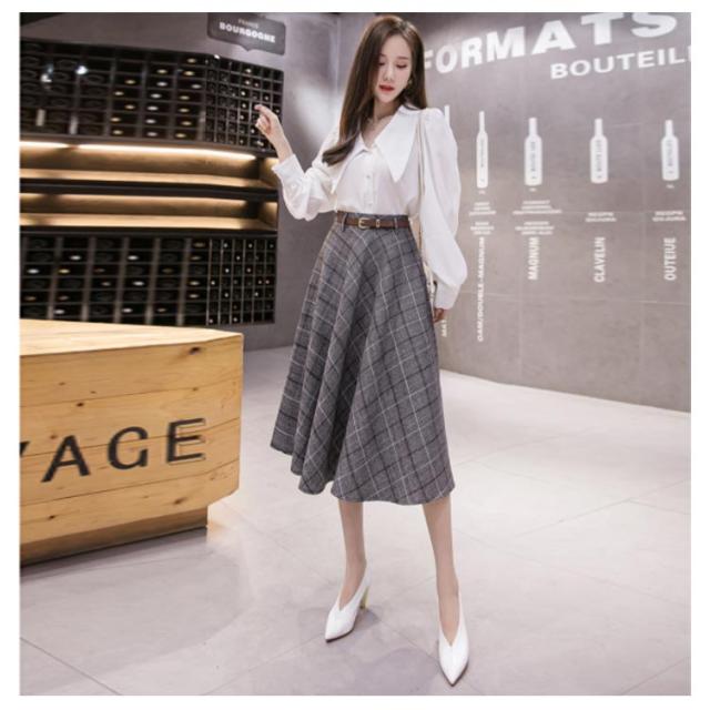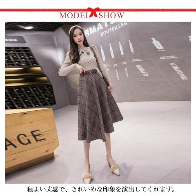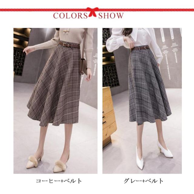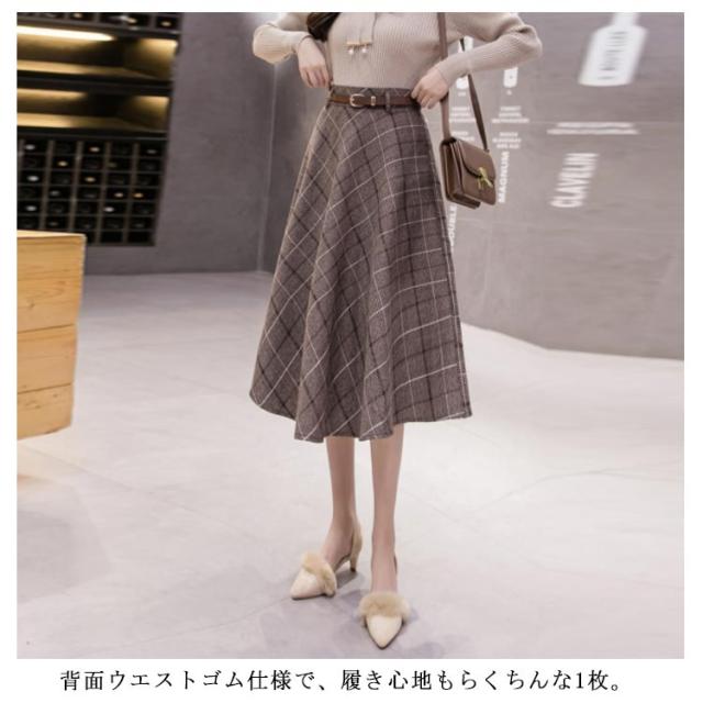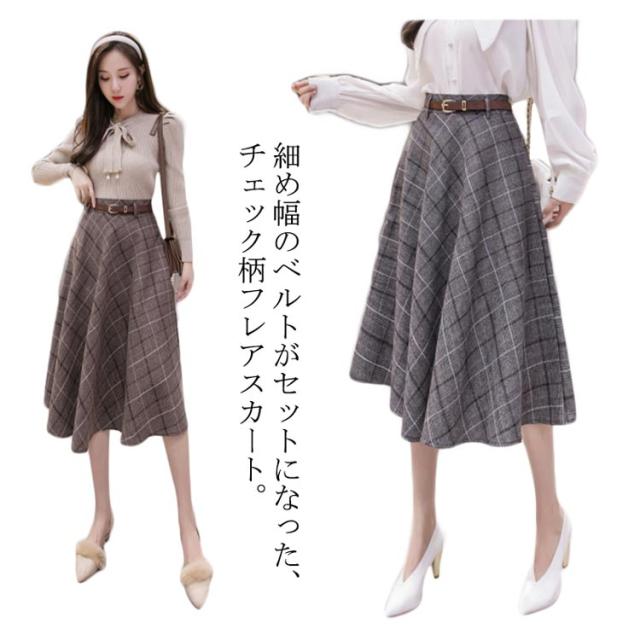 グレンチェック柄 フレアスカート ベルト付き ロングスカート チェック柄 aラインスカート ミモレ丈 膝下丈 総柄 レディース ボトムス スカート 大きいサイズ 体型カバー カジュアル
