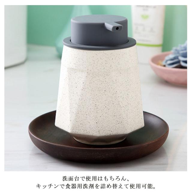 | 液体タイプのソープディスペンサー400ml。 押しやすさを極めたポンプヘッド。何度も押すストレスも無く、無駄にしません。 フタが取れるので洗いやすいです。 広い注ぎ口から、簡単にソープの詰め替えができます。 洗面台で使用はもちろん、キッチンで食器用洗剤を詰め替えて使用可能。 シンプルなデザインと落ちついたカラーでどんなインテリアにもマッチ。 | |