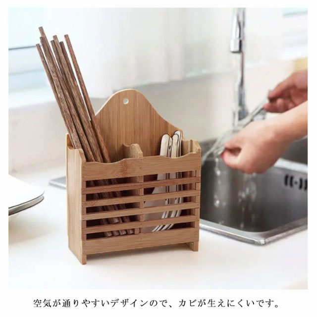 箸立て 竹製 はし立て お箸 スタンド 大容量 箸ポケッ 箸入れ 箸収納 スプーン フォーク ナイフ 食器 収納 カトラリーケース 仕切り 収納ケース 調理小道具立て 水切りラック 木製 壁掛け ダイニング ナチュラル キッチン収納 台所雑貨