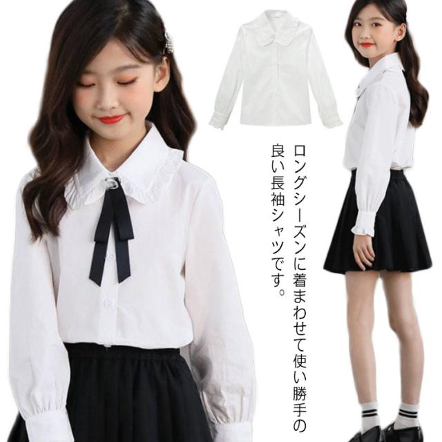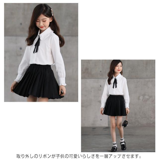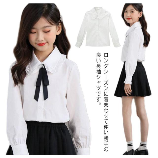 シャツ 子供服 長袖 フォーマル トップス 入園式 入学式 卒業式 発表会 結婚式 春秋 お洒落 可愛い 女の子 お洒落 ジュニア リポン付き
