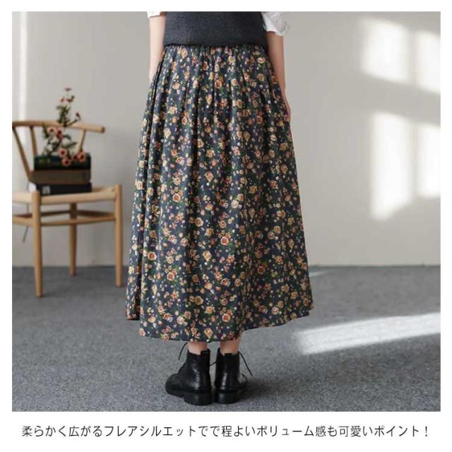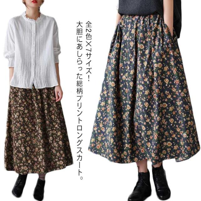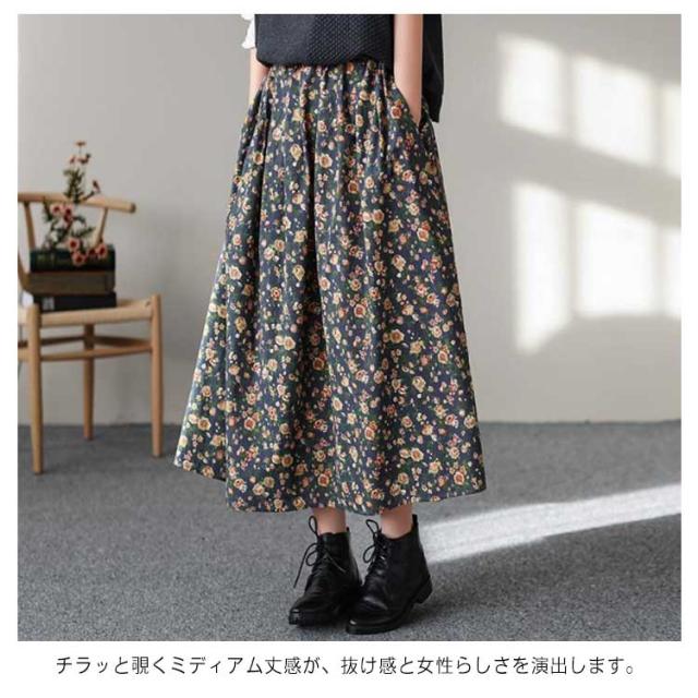 スカート 花柄スカート フレアスカート Aラインスカート ミモレ丈 膝下丈 ロングスカート プリント 総柄 フラワー ウエストゴム 大きサイズ 春 夏 秋 おしゃれ 可愛い
