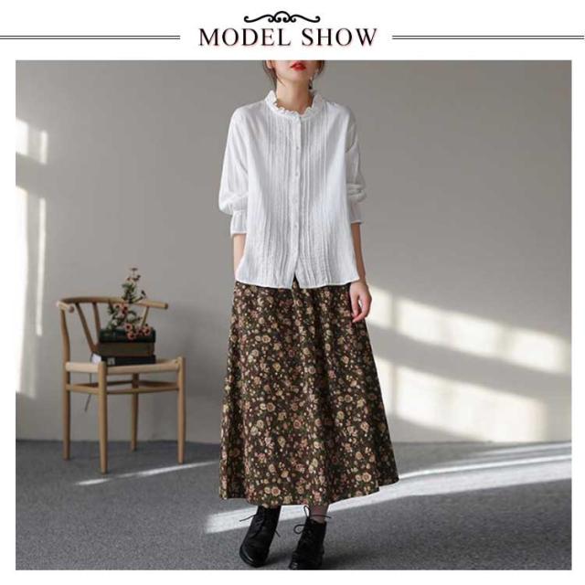 | 全2色×7サイズ!大胆にあしらった総柄プリントロングスカート。 1枚で華やかに仕上がる総柄に大人女子も取り入れやすいヴィンテージ調の色合いで、コーディネートのアクセントに◎ チラッと覗くミディアム丈感が、抜け感と女性らしさを演出します。 柔らかく広がるフレアシルエットでで程よいボリューム感も可愛いポイント! シンプルだから合わせやすく、お手持ちのトップスと好相性。 | |