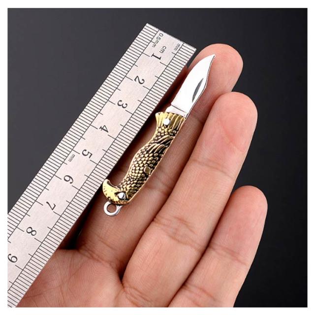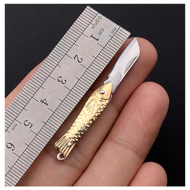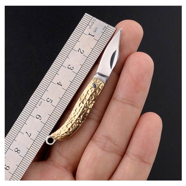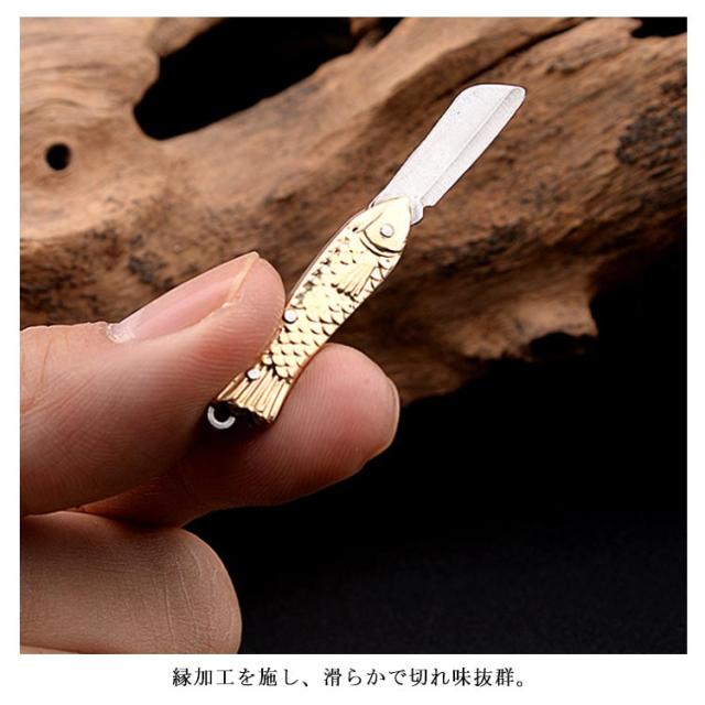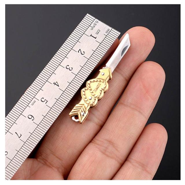 ミニナイフ 折り畳みナイフ キーホルダー カッターナイフ 折りたたみ 真鍮 ダンボールカッター ステンレスナイフ 段ボールカッター ミニカッター ストラップ穴 箱開封 雑貨 アウトドア 便利グッズ 送料無料