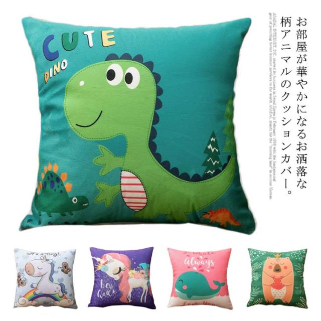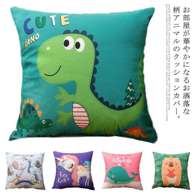 【送料無料】クッションカバー インテリア 雑貨 模様替え かわいい おしゃれ 花柄 動物 ウマ くま 恐竜 ゾウ ユニコン ねこ アニマル柄 汚れ防止 やわらか かわいい キッズ 子供 シンプル カジュアル 正方形 背当て クッション 40×40cm 45×45cm