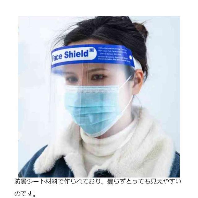 100枚セットフェイスド 飛沫予防 ウイルスブロック 顔面保護マスク 簡易式 保護ド 透明ド ウィルス対策 花粉対策 業務用 クリア 透明 軽量 水洗い PET製 曇り止め フェイスガード マスク併用