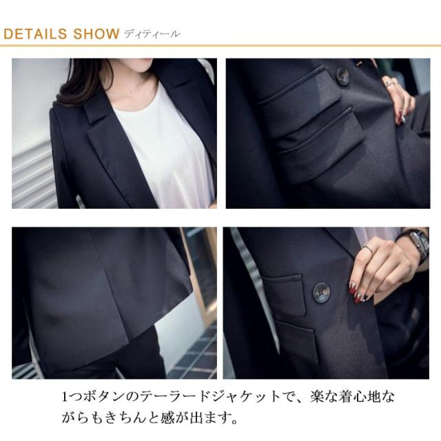 | フォーマルにもカジュアルにも使える定番のテーラードジャケット。 ジャケットは、身体のラインを拾いすぎない程よいゆとりのあるシルエットにすることでこなれ感を演出してくれます。 シワになりにくくお手入れ楽ちん。 1つボタンのテーラードジャケットで、楽な着心地ながらもきちんと感が出ます。 ウエストバックゴム仕様なので、穿き心地も抜群です♪ ジャケットとパンツのサイドにはポケット付きで小物入れに便利◎ 通勤デイリースーツとしてはもちろん、入学式や卒業式、結婚式、お宮参り、披露宴等にも対応可能です。 セットアップできちんとしたシーンにも、単品使いでデイリースタイルにも! | |