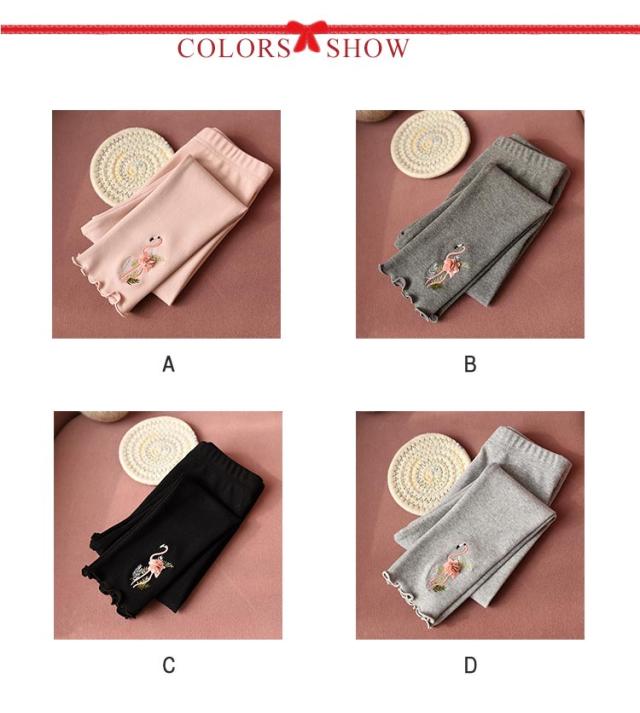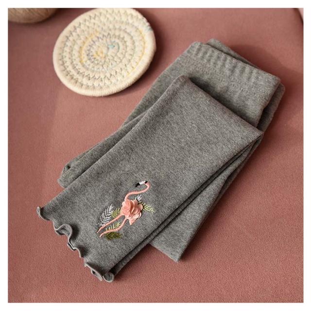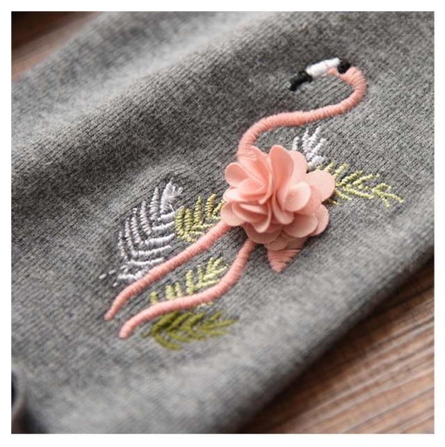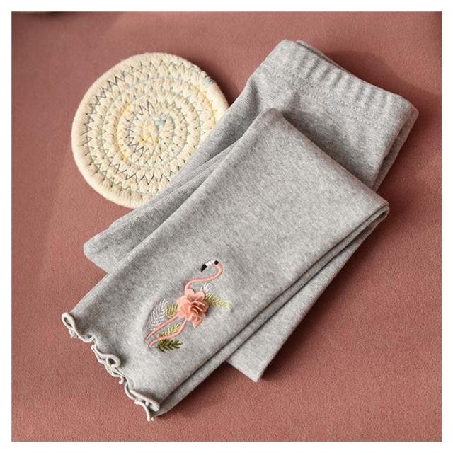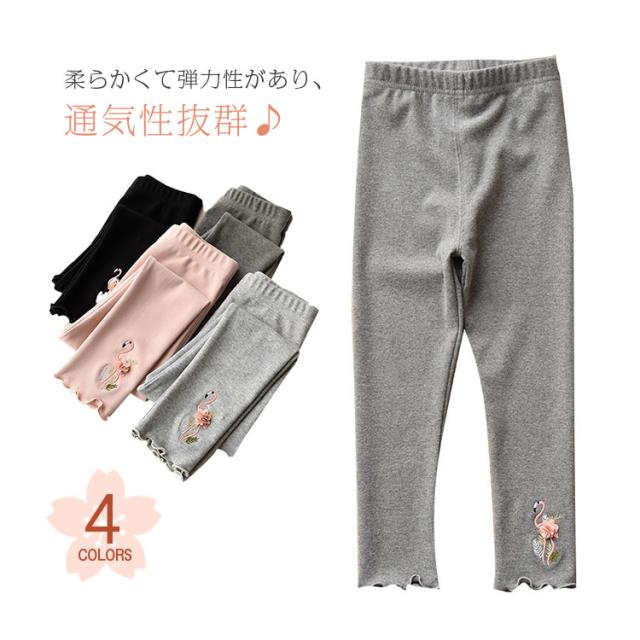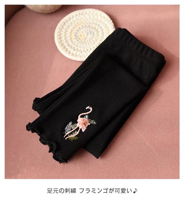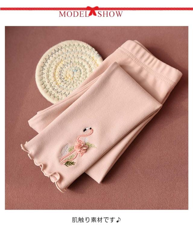レギンス スパッツ ボトムス 10分丈 伸縮性 女の子 キッズ 韓国子供服 子ども服 春 秋 冬 90cm 100cm 110cm 120cm 130cm 刺繍 フラミンゴ