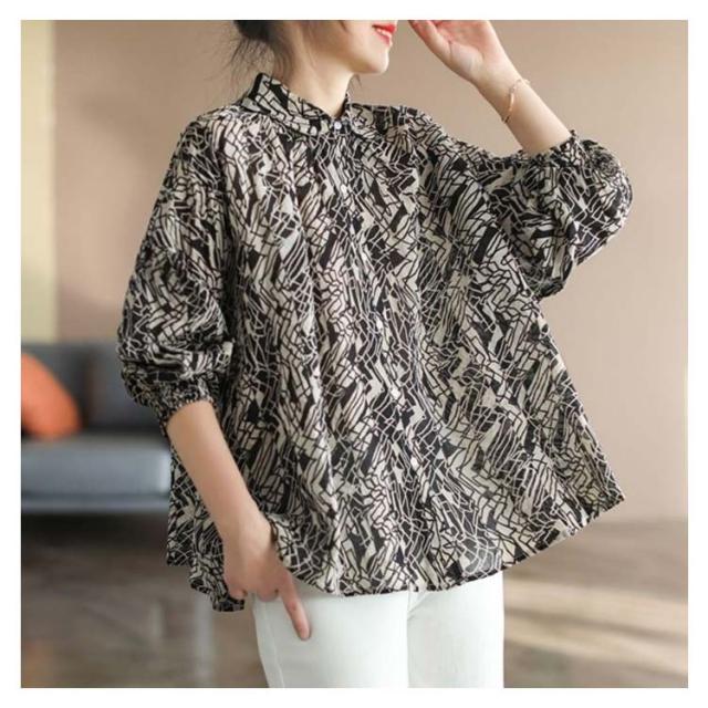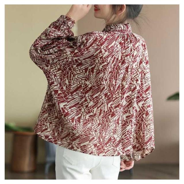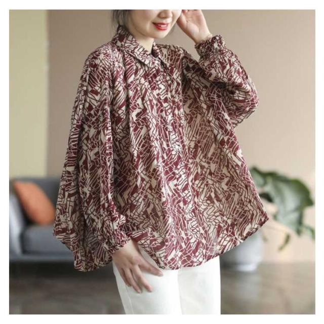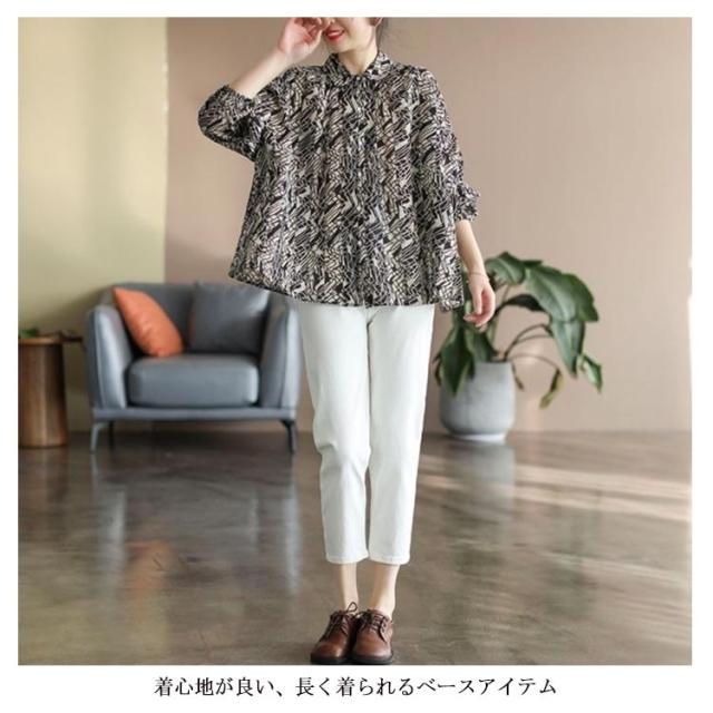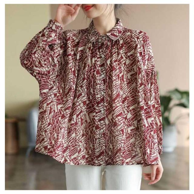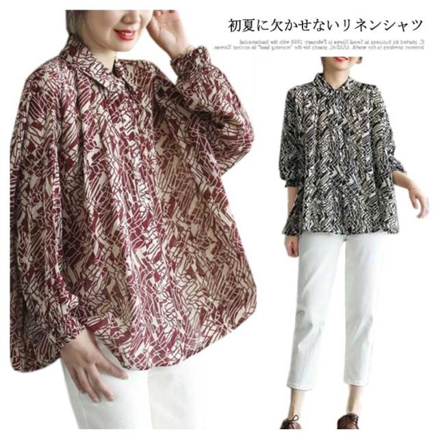 リネン シャツ レディース リネンシャツ ブラウス UVカット 長袖 送料無料 夏 麻 おしゃれ トップス 40代 50代 60代 綿麻 柄 総柄 黒 赤 涼しい コットンリネン