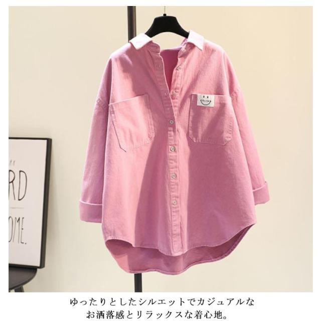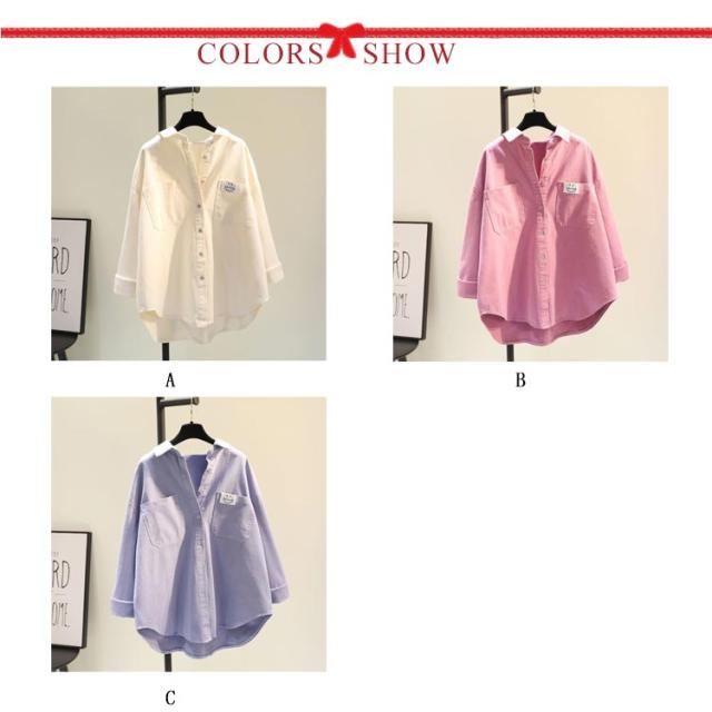 送料無料 カジュアルシャツ レディース 長袖 春秋 チュニック トップス ゆったり ロゴ付き ドロップショルダー 大きいサイズ 春服 春秋 体型カバー 着痩せ カジュアル 無地 リラックス お洒落 通勤 通学