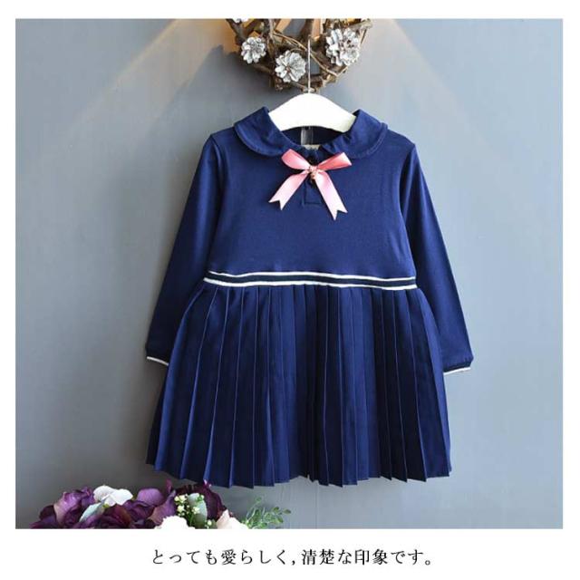 プリーツワンピース 制服 七五三 白丸襟 長袖 子供服 フォーマル 春秋 ドレス 入園式 入園式 ドレス 卒業式 発表会 卒園式 結婚式 お祝い 女の子 キッズ ワンピース 送料無料