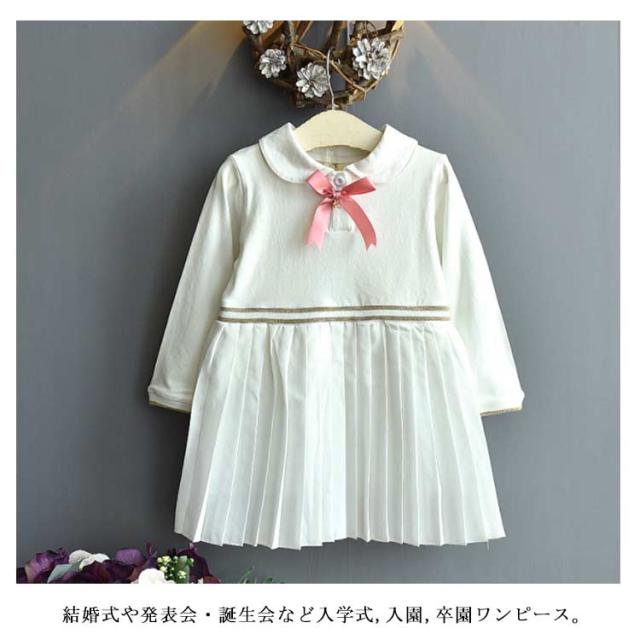 | いつだって可愛らしく♪春秋ワンピース 丸襟、プリーツスカート♪ 胸にリボンを装飾。 とっても愛らしく,清楚な印象です。 結婚式や発表会・誕生会など入学式,入園,卒園ワンピース。 | |