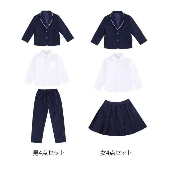 4点セット 子供 フォーマル 卒業式 入学式 パンツスーツ スカートスーツ 子供スーツ キッズ 大人 フォーマルスーツ 子供 制服 ブレザー キッズ 男の子 女の子 長袖 パンツ メンズ レディース 小学生 スクール 発表会 結婚式 七五三 生日会 演出服 セットアップ かわいい