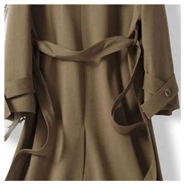 | しっかりとした張り感のあるツイル素材を使用しています。シャープで美しいシルエットのトレンチコートにピッタリの素材感です 安定感のある魅力的なブラック。細見えするのに女らしい上質シンプル派のマストハブアイテムです。 どんな着こなしも清涼感のある印象にしてくれるブラック普段使いはもちろん、スーツの上に来ても様になるなカラーです。 トレンチ独特のカッコ良さに上品な女らしさをアピールする美しいベージュは着映え効果抜群の本物の大人色! どんな色とも馴染み良く羽織るだけでコーデがワンランクUP たつぷり目の分量感がこなれた 大人の余裕を感じさせ ワンランクUPさせる着映え力に差を付けます! トレンチのキチンと感を残しつつも オシャレ度抜群のモードスタイル | |