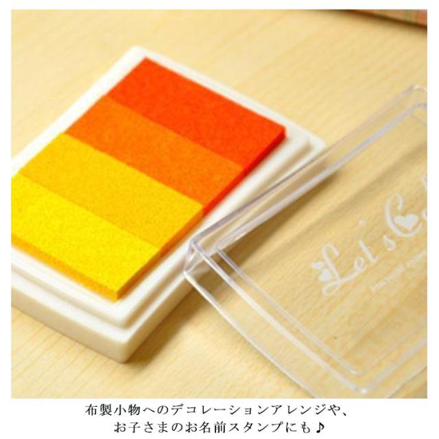 | グラデーションカラーのスタンプ台。 インクスポンジは厚くて、インク量が多い♪ 布以外にも紙やコーティングの施されていない木など、吸収性のある表面に幅広くご使用いただけます。 布製小物へのデコレーションアレンジや、お子さまのお名前スタンプにも♪ ハンドメイドや工作、DIYなど、様々な場面で活躍してくれます! 6色あります。好きな色をお選びいただけます。 | |
