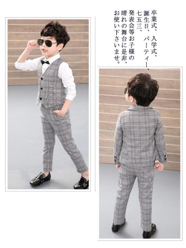 子供スーツ 3点セット 入学式 男の子 子供 スーツ 男の子スーツ フォーマル 長袖 子供服 男の子 入園式 結婚式 男の子 スーツ キッズ フォーマルスーツ 長袖 ジャケット ベスト 長ズボン おしゃれ 卒業式 90 100 110 120 130 140cm チェック