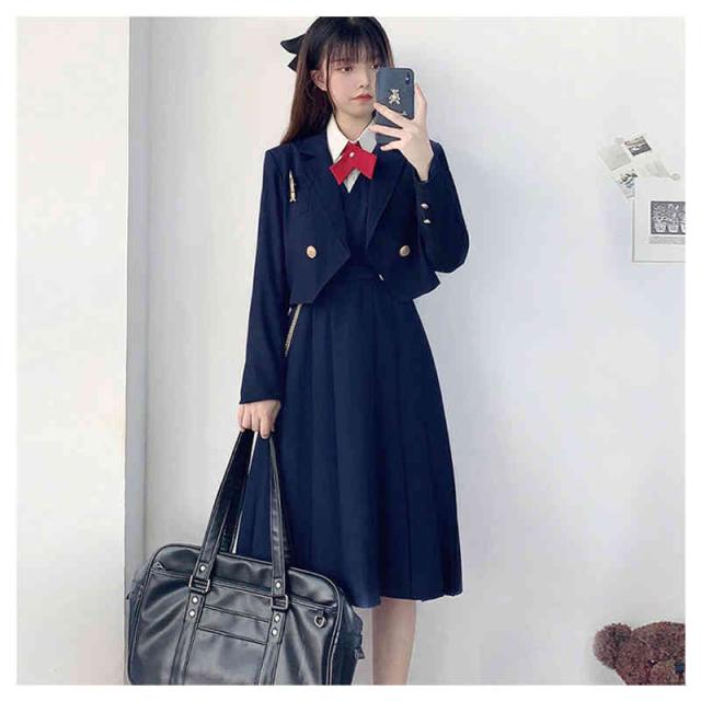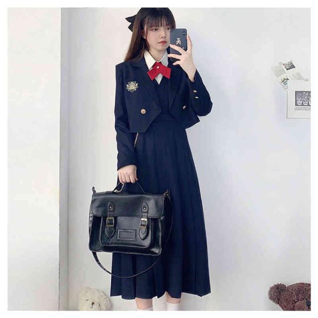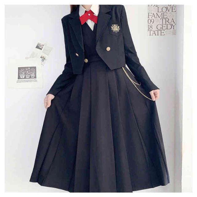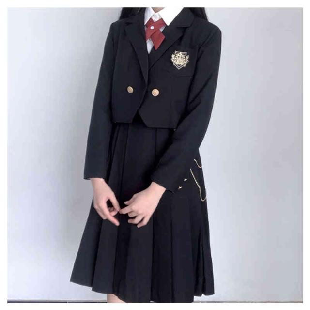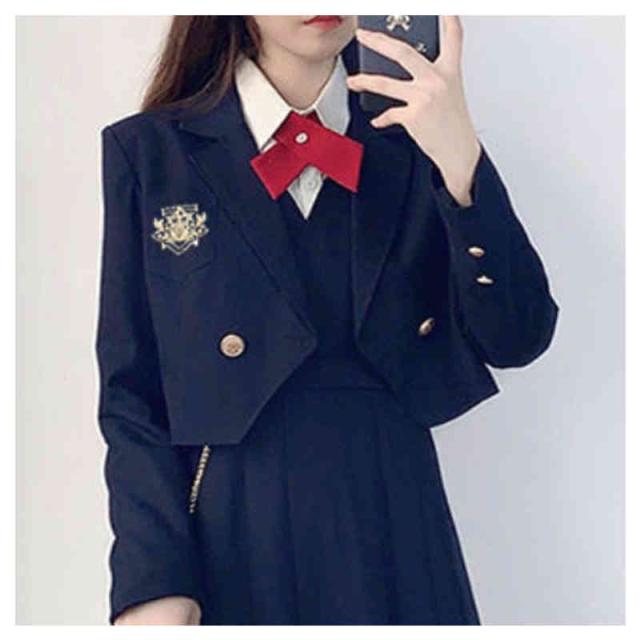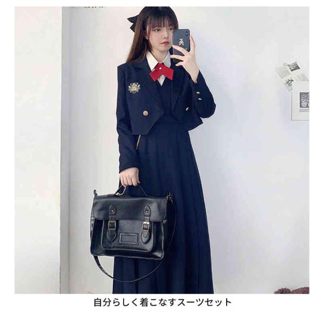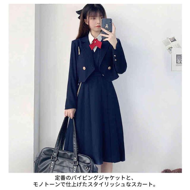 | 豪華4点セット!スタイリッシュでお洒落に決めたい人へ。 自分らしく着こなすスーツセット 定番のパイピングジャケットと、モノトーンで仕上げたスタイリッシュなスカート。 優しい着心地素材がgood!着まわしの効くシンプルでキュートなデザイン。 大人っぽいモノトーンカラーで仕上げた学生服コスチュームは、ややロング丈のブレザーにミニスカートをあわせる可愛らしいスタイル。 セット内容:ジャケット/スカート/ネクタイ/シャツ 4点セット | |