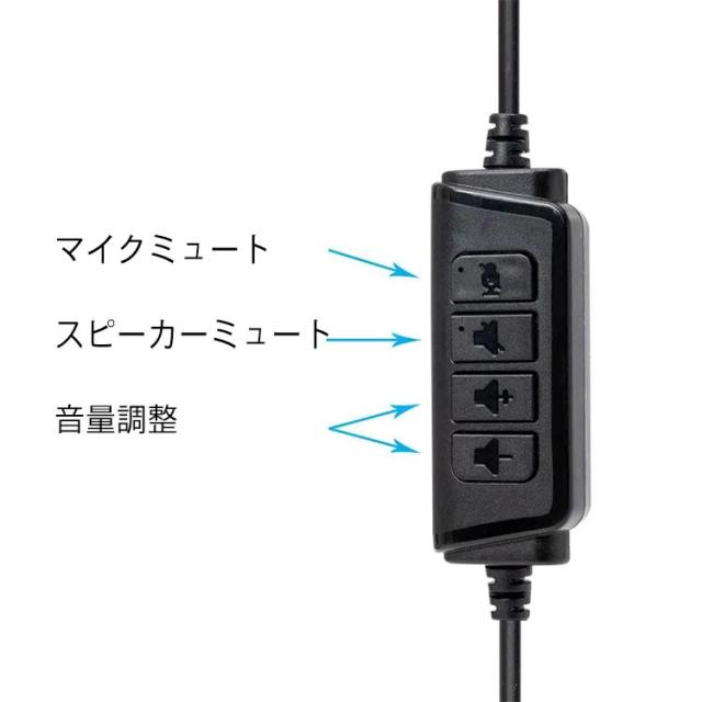 | パソコン用USB接続ヘッドセット。 しっかりと音声を聞き取れる両耳タイプで、遮音性に優れています。 マイクの角度調整可能で、必要ない際は、ヘッドバンド内に回転させて収納可能。 ケーブル部にボリューム・マイクミュートコントローラを搭載しております。 | |