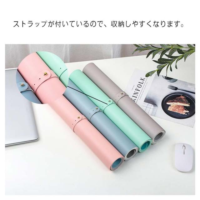 | ・両面使える超大型サイズのマウスパッドです。 ・豊かな11色から選べる。 ・高品質のPUレザーで作られています、お手入れが簡単。 ・サイズ60cm*30cmで、ノートPC、マウス、キーボードを十分に収容できます。 ・ストラップが付いているので、収納しやすくなります。 | |
