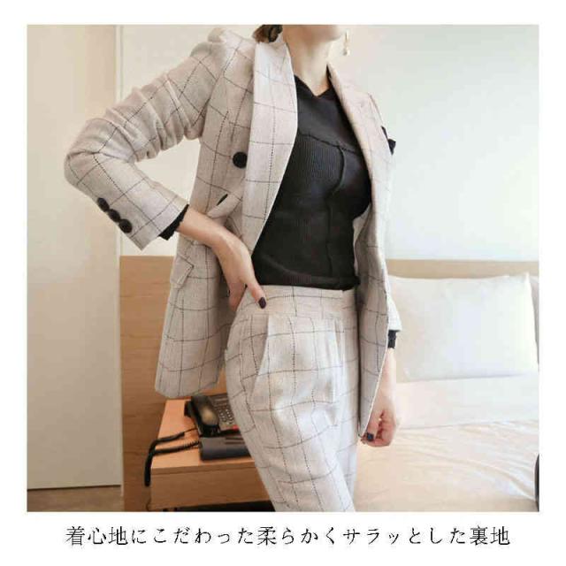 | 上品にスタイルアップスーツセットです 着心地にこだわった柔らかくサラッとした裏地 さらっとした肌触りの薄手の裏地はオールシーズン活用出来ます 折り襟デザインでファッション感up! 便利なポケット、すぐに取り出せるので名刺や携帯入れに最適 高級感のあるボタンが、きちんと感をアップ パンツで女性らしい印象を与えながら細見え効果に期待 | |