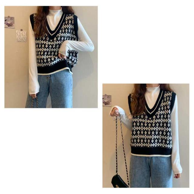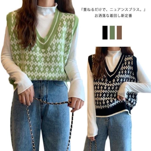 レディース ニット トップス ベスト Vネック ニットベスト 重ね着 スクールベスト ノースリーブ ニット ベスト トップス チョッキ 柄ベスト スクールセーター 制服 スクールニット 学生服 学校 高校 中学 通学 春 秋 冬 送料無料