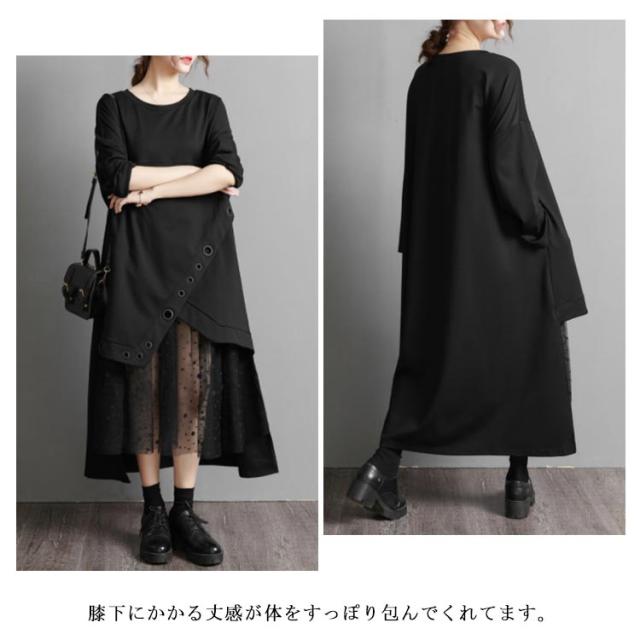 シャツワンピース ロングワンピース 無地 レースワンピース 長袖ワンピース プリーツワンピース 大きサイズ カジュアルワンピース ミモレ丈 膝下丈 ゆったり 体型カバー 春 秋 送料無料