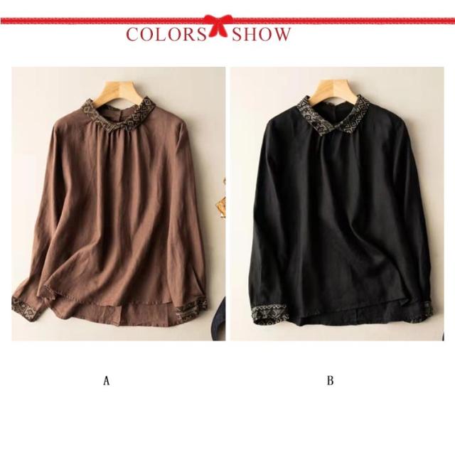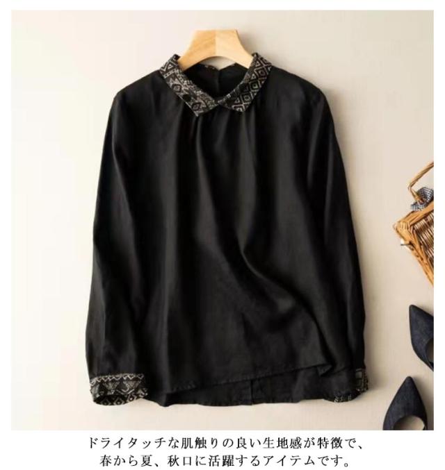 【送料無料】 エスニック リネンブラウス 綿麻混 レディース シャツ 綿麻 トップス リネン シャツ 長袖 ブラウス ナチュラル エスニック 着痩せ ゆったり 体型カバー カジュアル 可愛い 春 夏 秋