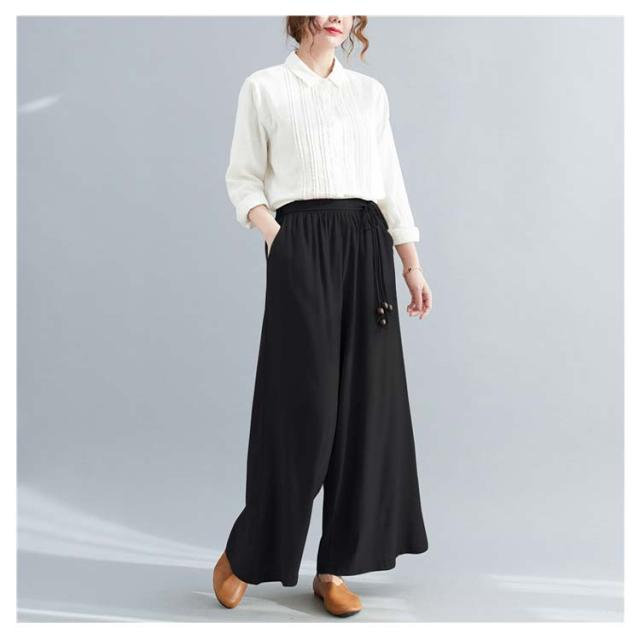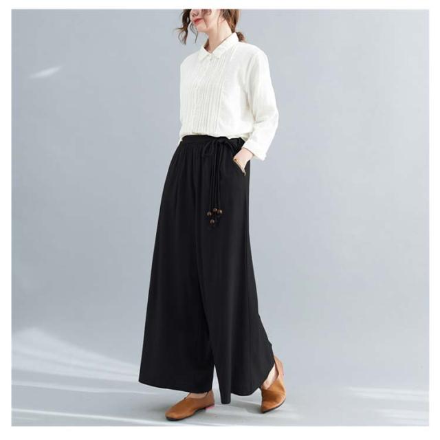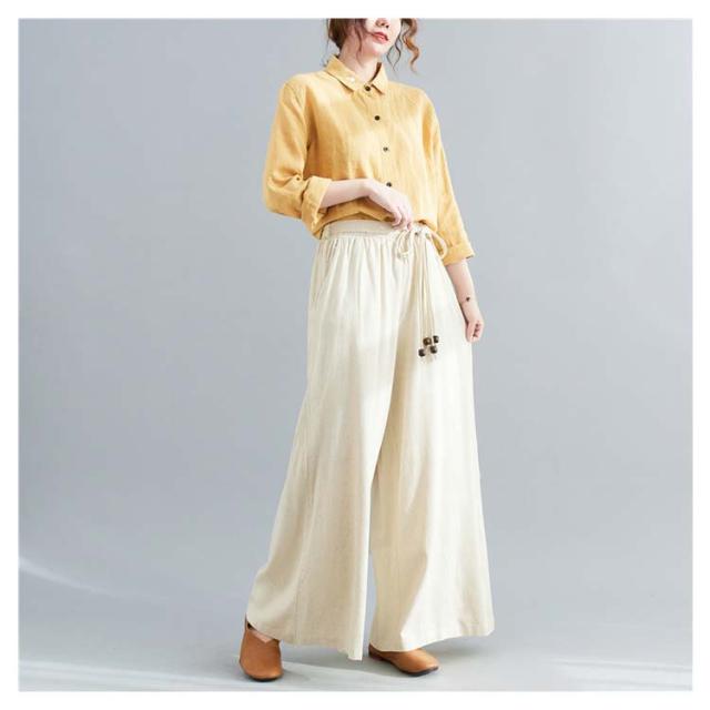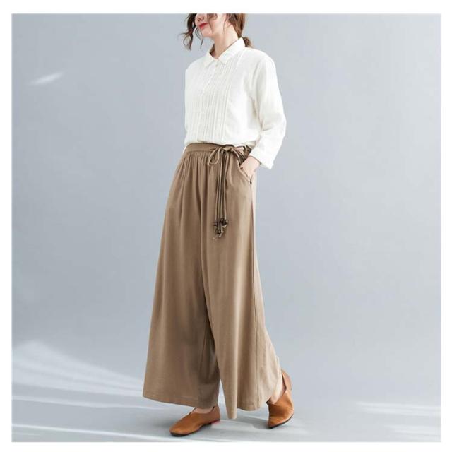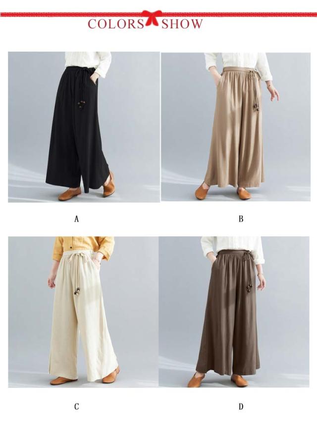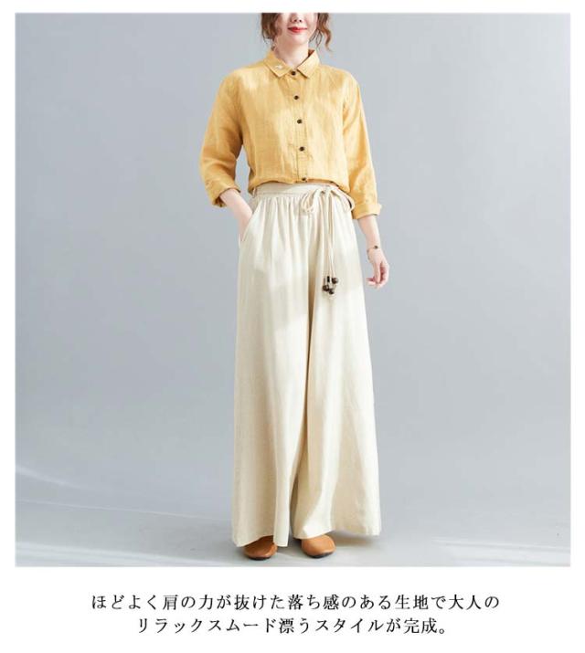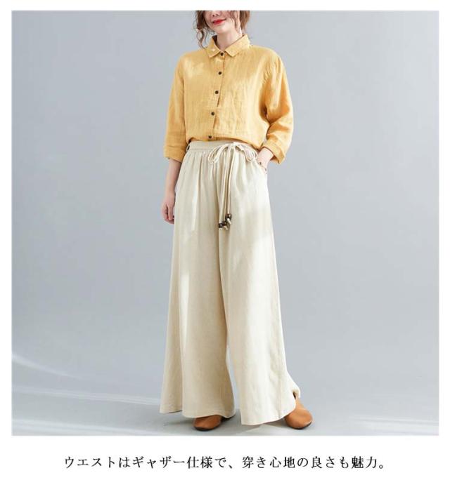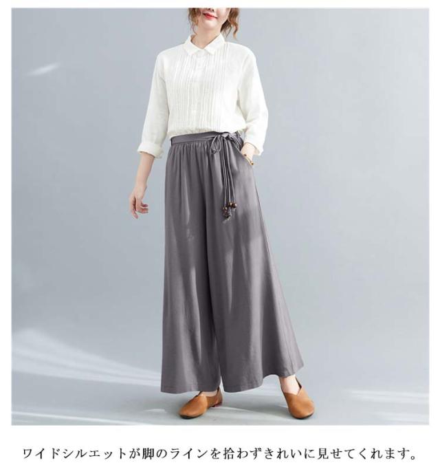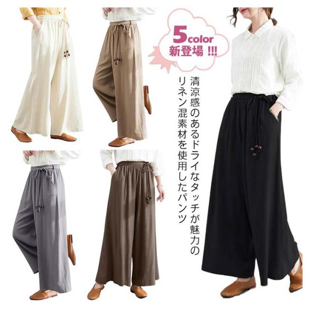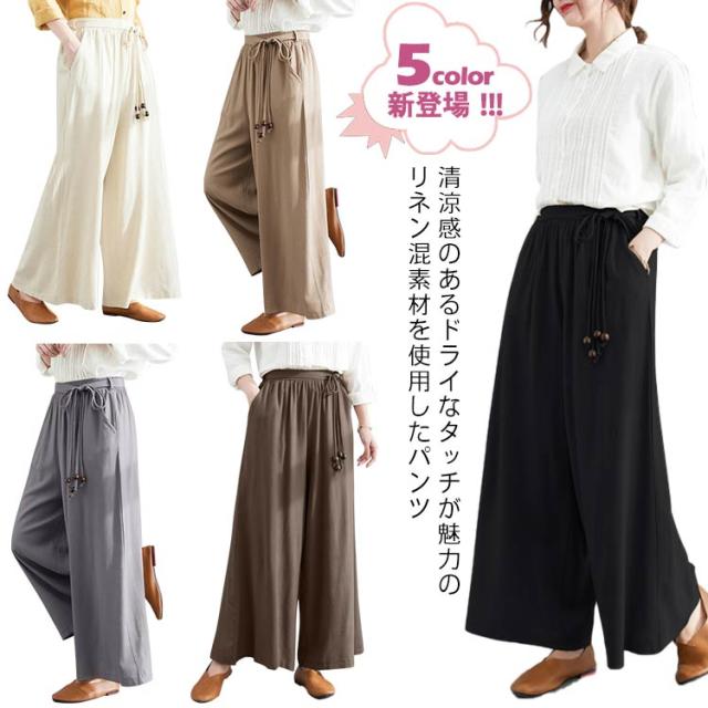 ワイドパンツ リネン レディース リネン混ワイドパンツ ロング パンツ レディース 麻 リネン ボトムス 麻混 無地 紐ベルト セットアップ ウエストゴム きれいめ 夏 涼しい ゆったり 綿麻 体型カバー 送料無料