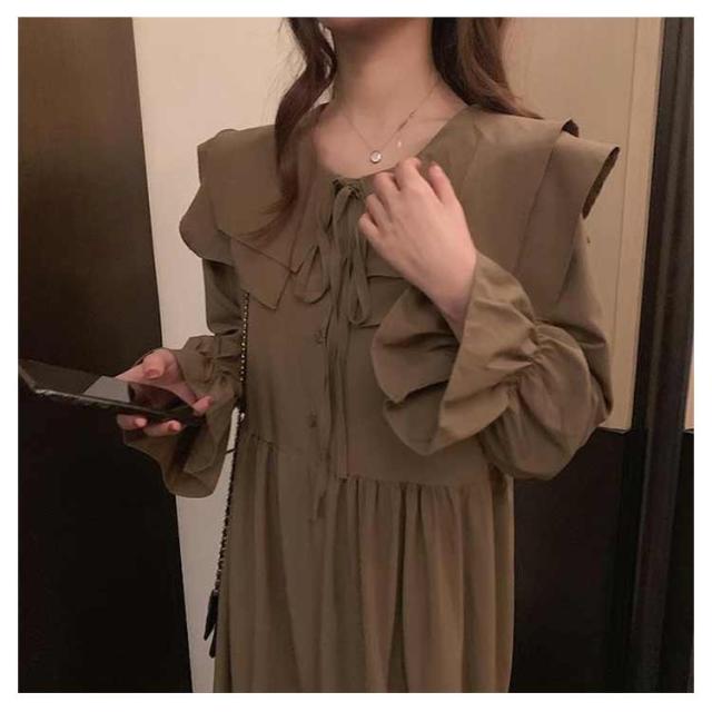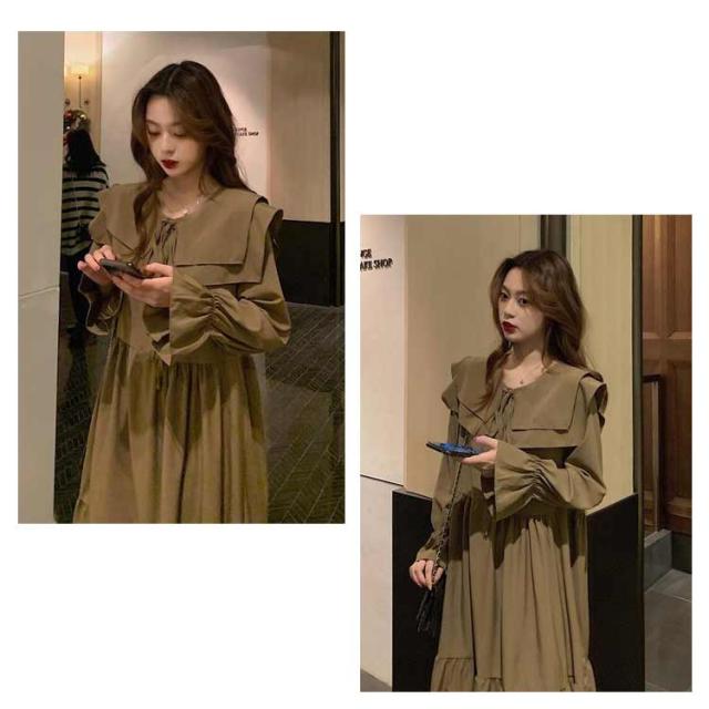 | トレンド感が溢れるロング丈ワンピース。 セーラー襟が可愛くてポイントになる。 ゆったりとしてリラックスに着こなせるスタイリング。 ニットなどをレイヤードして、インナーワンピースとしてもお使いいただけます。 | |