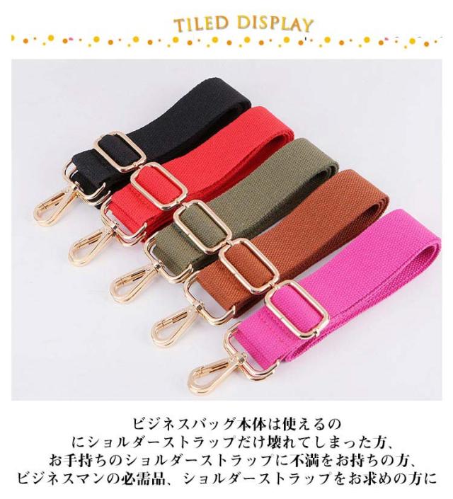 | 人気上昇中のショルダーストラップ。 ビジネスバッグ本体は使えるのにショルダーストラップだけ壊れてしまった方、お手持ちのショルダーストラップに不満をお持ちの方、ビジネスマンの必需品、ショルダーストラップをお求めの方に! フック部分の合金は3色あり、ランダム発送。 金具を取り付けるタブがある、お手持ちのバッグやポーチに使用可能なロングショルダーストラップ。 キャンバス素材のバッグとの相性が良く、シンプルカラーから個性柄まであなたのバッグをイメチェンします♪ | |