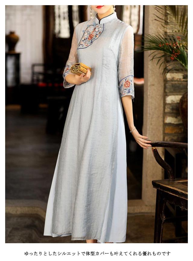 刺繍 チャイナドレス ワンピース 礼服 スーツワンピ ワンピーススーツ ワンピース フォーマル ロングワンピース 五分袖 シースルー 花柄刺? スタンドカラー Aライン 可愛い 演奏会 発表会 結婚式 コスプレ ドレス 送料無料
