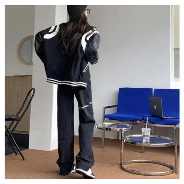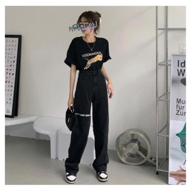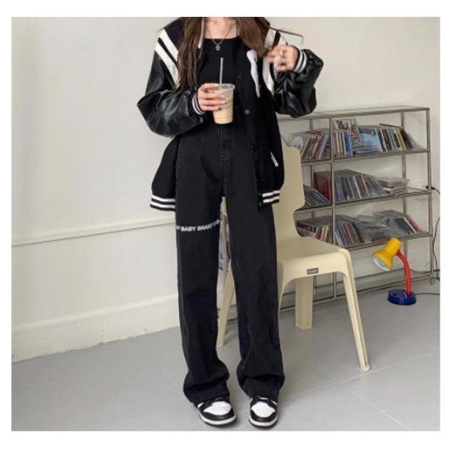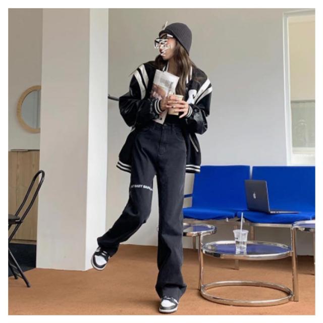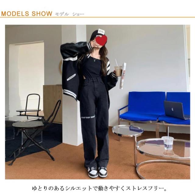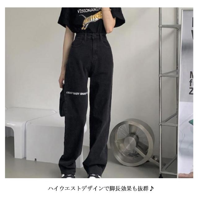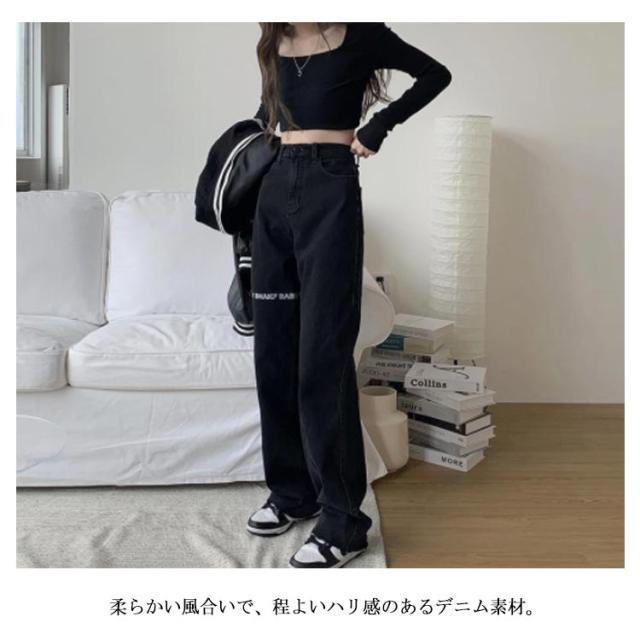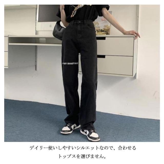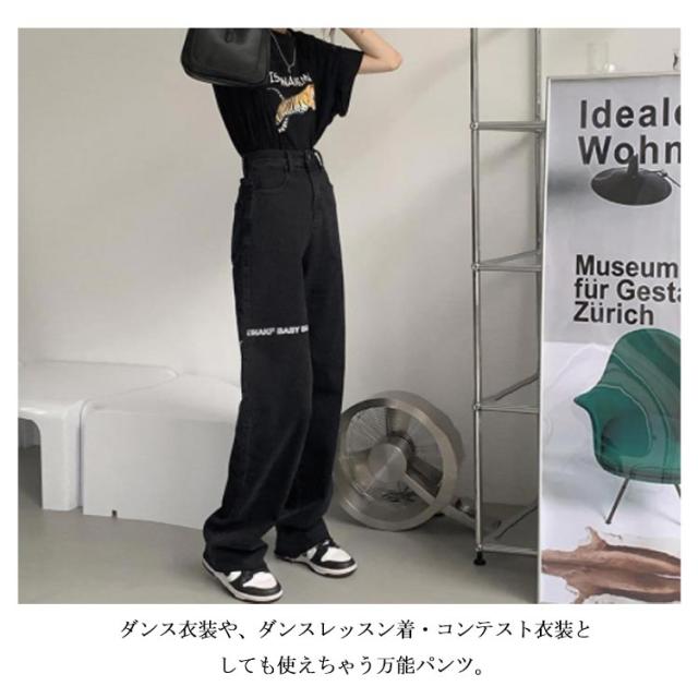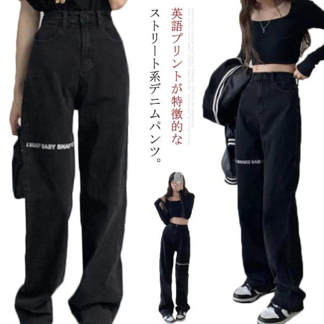 デニムパンツ レディース ロゴ プリント ストレートパンツ ジーパン ジーンズ ロングパンツ ボトムス 長ズボン ゆったり イージーパンツ ダンスパンツ ヒップホップ ダンス衣装 ストリート系 原宿系 カジュアル おしゃれ オールシーズン 送料無料