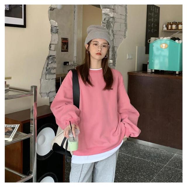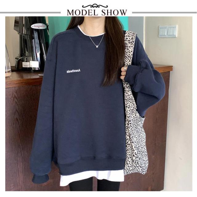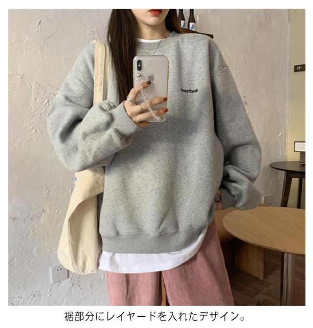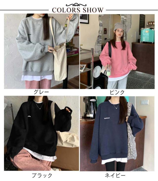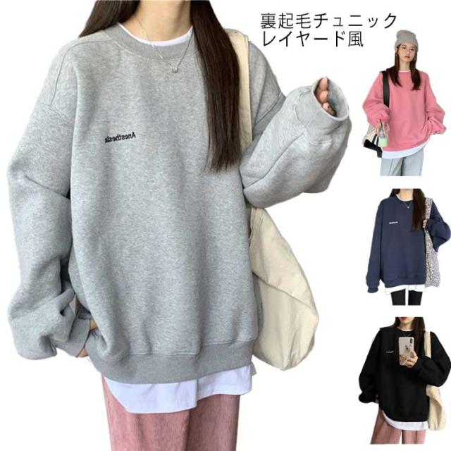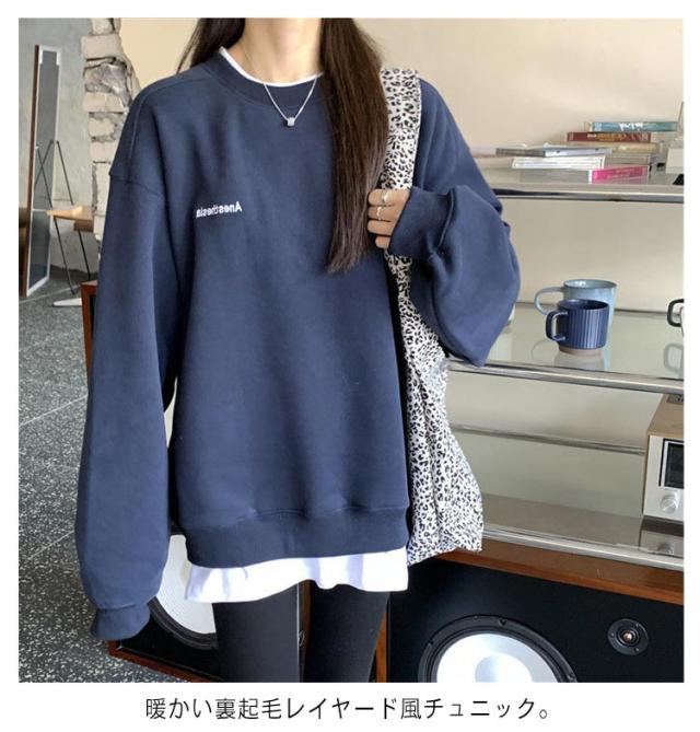 レイヤード風チュニック 裏起毛 スウェット コットン トップス プルオーバー トレーナー チュニック レディース レイヤード ゆったり 大きいサイズ 春 秋 送料無料