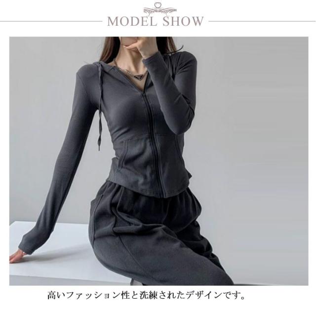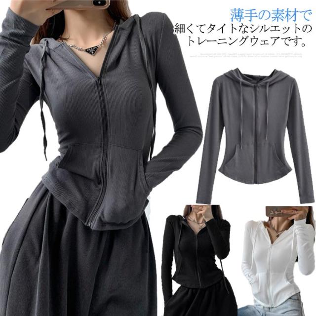 ジャージ レディース ジップアップ フード付き パーカー 長袖 トップス 薄手 部屋着 ジャージジャケット スウェット スポーツ カジュアル スリム 着痩せ ルームウェア おしゃれ シンプル 春 秋冬 グレー 黒 ショート丈 送料無料