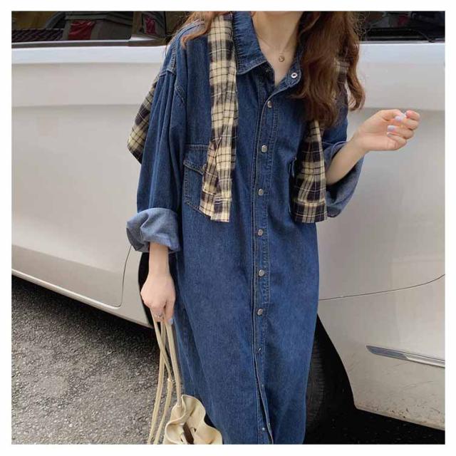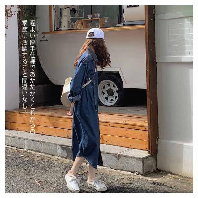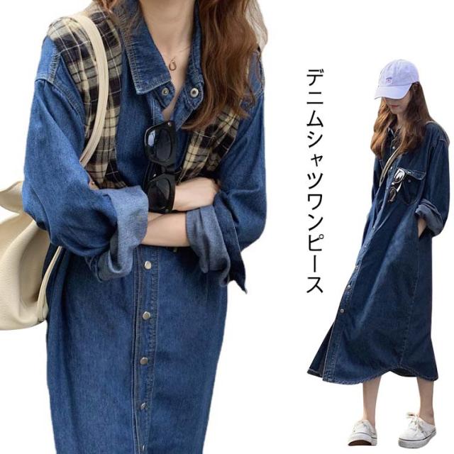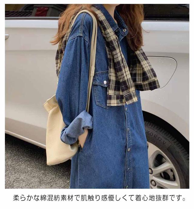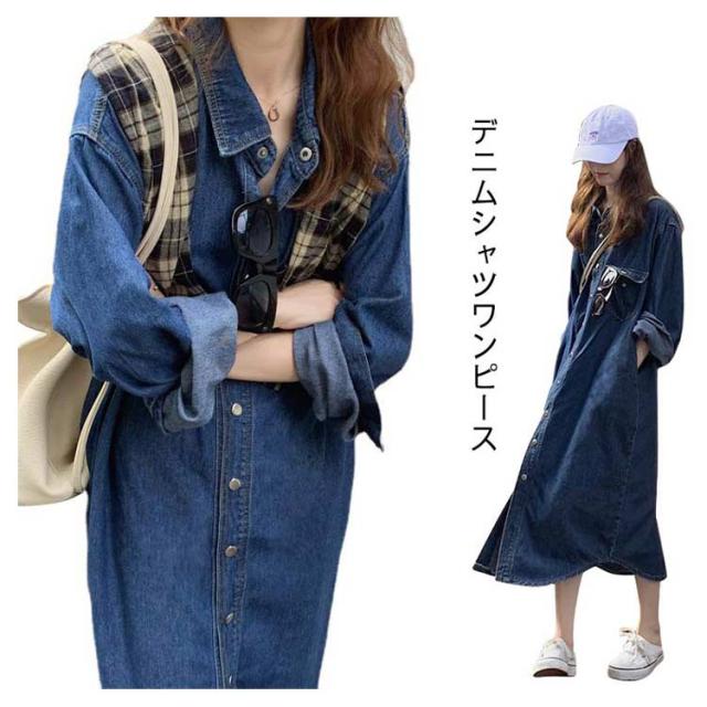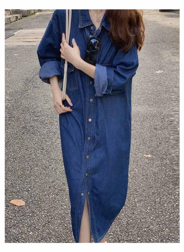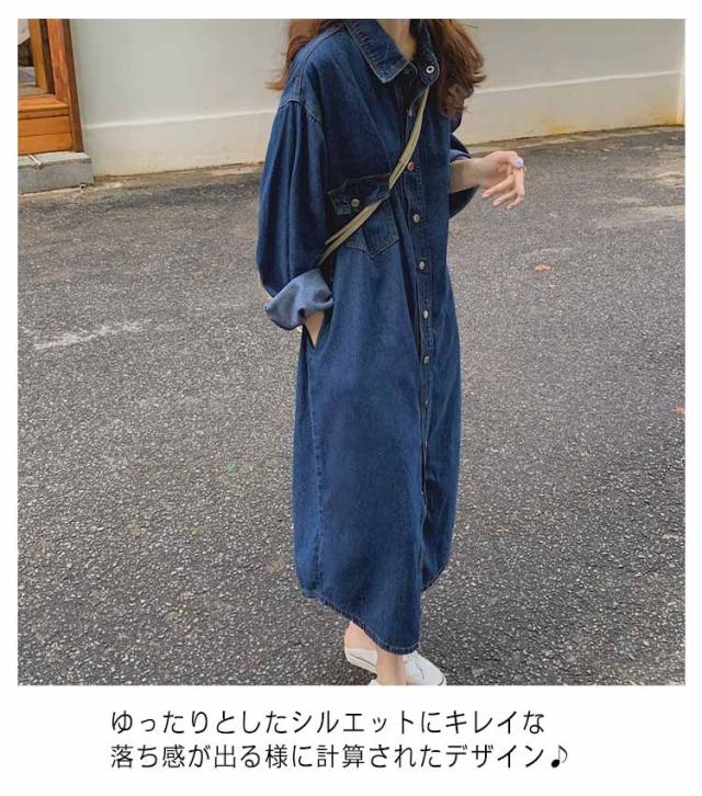 デニムシャツワンピース レディース シャツワンピ 羽織り ロング デニム シャツ ボタン 前開 長袖 体型カバー 無地 ゆったり チュニック ロングワンピース 送料無料 着痩せ カーディガン ライトアウター シンプル ブルー 20代 30代 40代