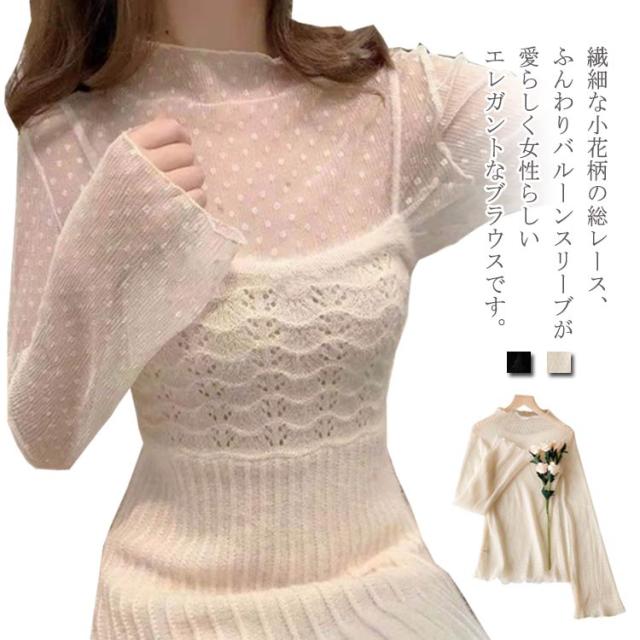送料無料 スルー トップス ブラウス レース レディース カットソー 衣装 長袖 総レース 春 夏 透け感 秋冬 きれいめ かわいい 大人 上品 スタンドカラー 結婚式 二次会 お呼ばれ 20代 30代 ファッション