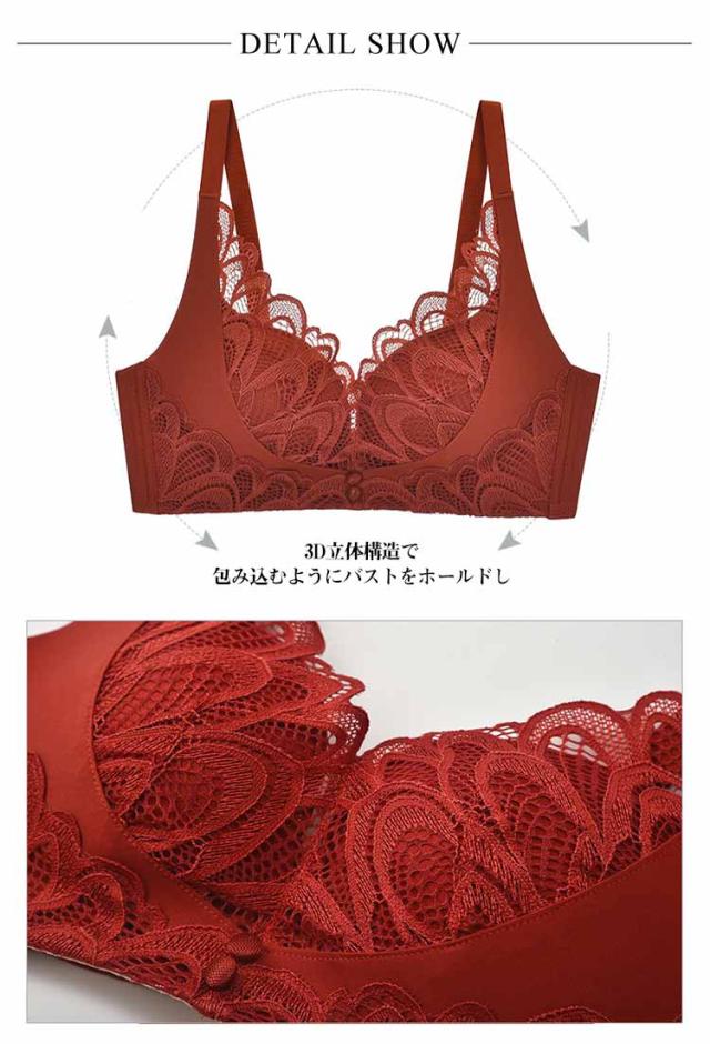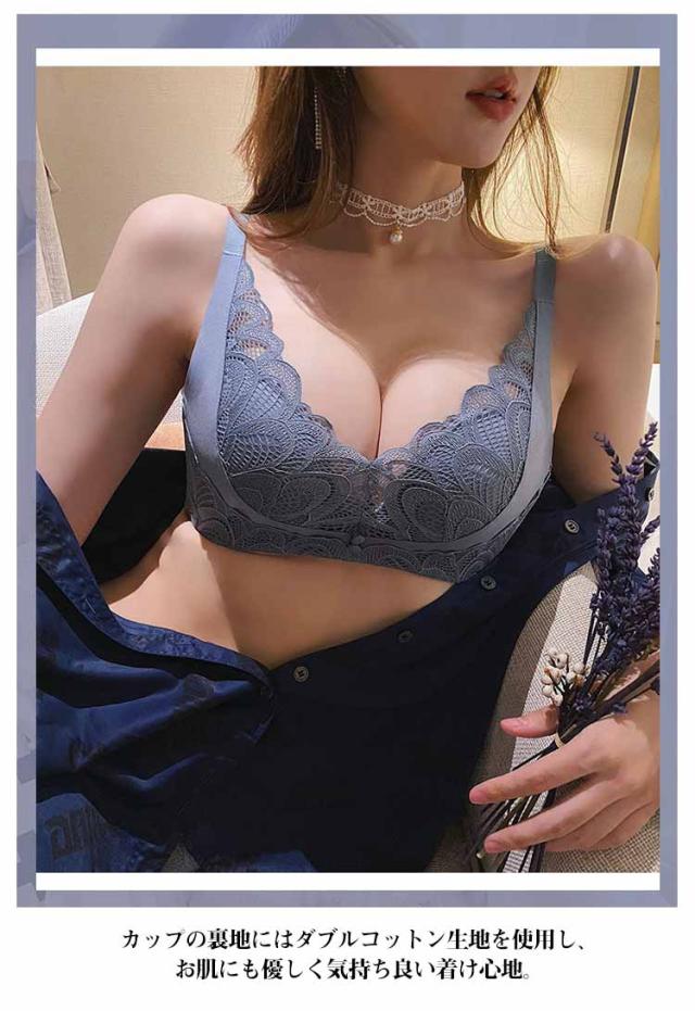 ブラ&ショーツセット ノンワイヤー ブラジャー 3/4カップ レース 脇高 ブラ 育乳 夜用ブラ バストアップ 谷間メイク インナー 補正 下着 アンダーウエア かわいい セクシー 薄手 通気性 送料無料