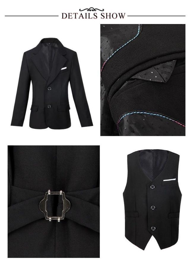 | サイズについての説明 | セット内容:ジャケット、ズボン、ベスト、ワイシャツ、ネクタイ、蝶ネクタイ。 |