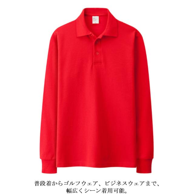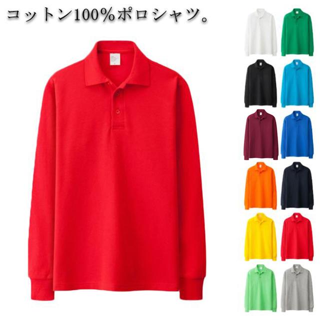 ポロシャツ 綿100% 長袖 メンズ ポロシャツ 無地 吸汗 速乾 コットン100% トップス ドライ ビズポロ ユニフォーム ゴルフウェア スポーツ 通学 通勤 ビジネス イベント 作業服 介護 文化祭 運動会 在宅 テレ