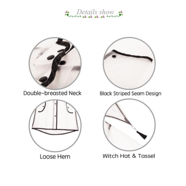 | シンプルながらも、タッセル付きのとんがりフードが可愛いレインコートです。 ブラックのパイピングはピンストライプでさりげないオシャレポイント。 性別を選ばないデザインなので兄妹で使いまわすことも可能! | |